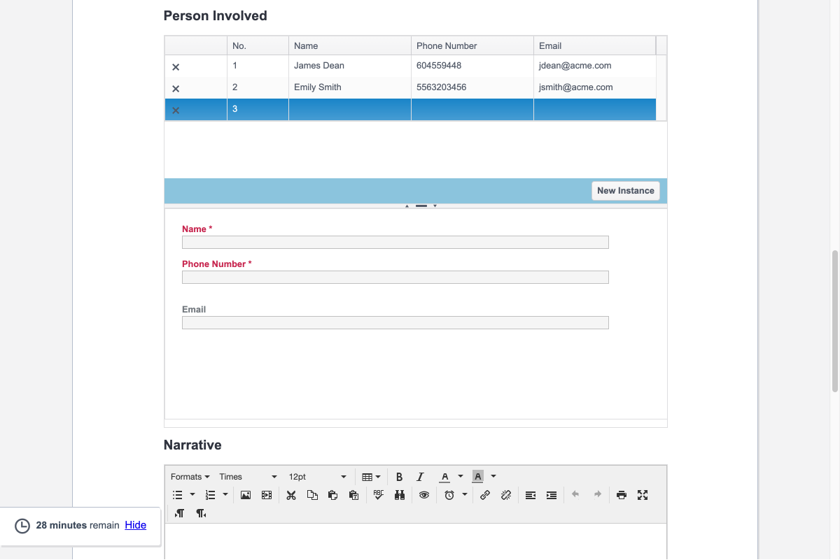 Some single-page E-Alert module may have multi-instance sections. These sections allow the user to add multiple entities in for one section.